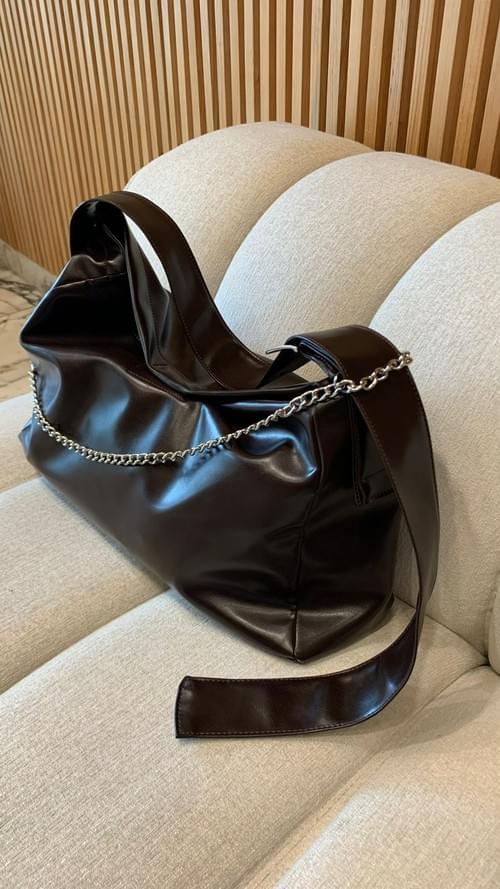 Diseñado en material tipo piel con acabado suave y un tono chocolate profundo que lo hace ver elegante, versátil y muy chic.